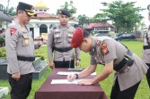 PELALAWAN - Kapolres Pelalawan, AKBP Afrizal Asri, SIK, memimpin upacara serah terima jabatan Waka Polres dan Kasat Narkoba Pol.