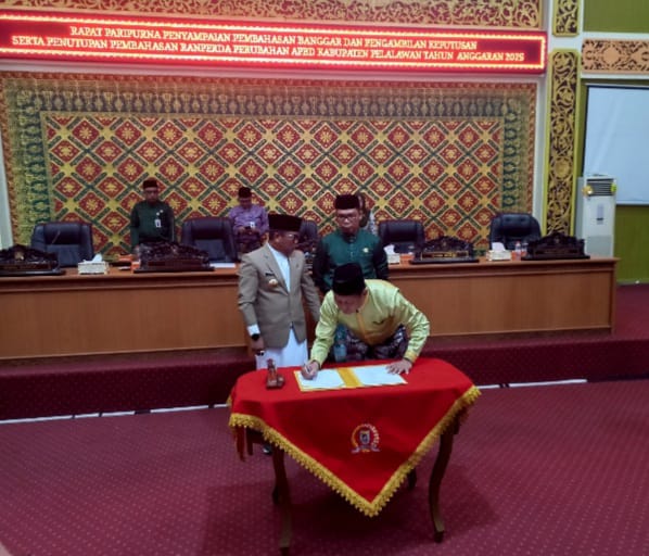 “Penandatanganan KUA-PPAS ini merupakan salah satu tahapan penting dalam proses penyusunan APBD, yang menjadi dasar arah pembangunan dan kebijakan fiskal daerah untuk satu tahun ke depan. Kesepakatan ini mencerminkan komitmen bersama antara legislatif dan eksekutif dalam merumuskan kebijakan anggaran yang berpihak kepada rakyat serta responsif terhadap tantangan dan kebutuhan daerah.”pungkas Ketua DPRD Pelalawan Syafrizal SE