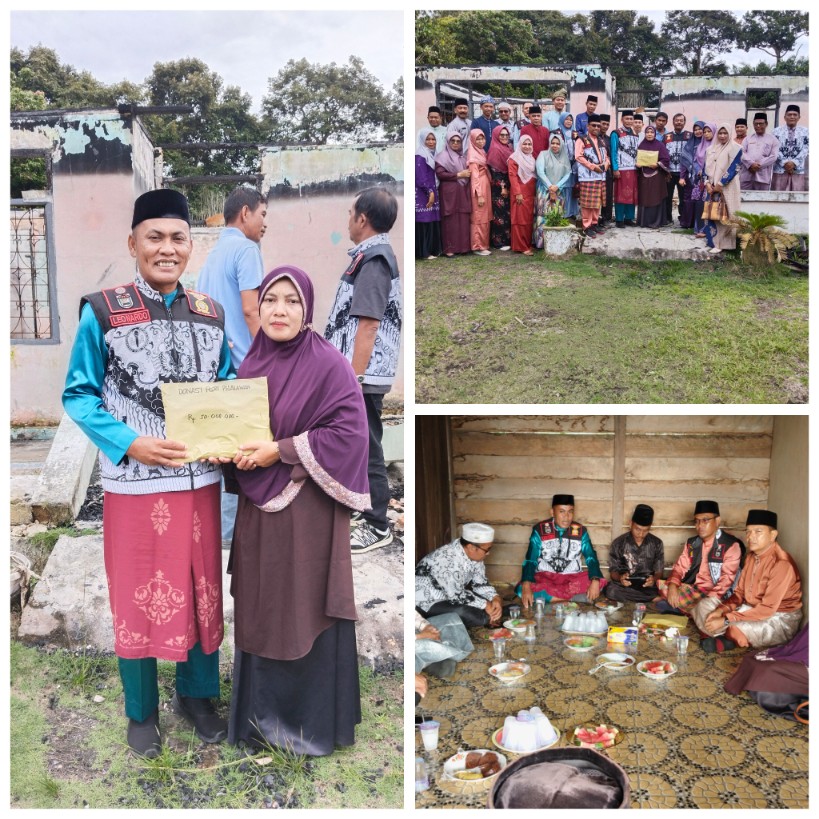 PELALAWAN - Sebagai bentuk rasa peduli dan solidaritas pada sesama guru, korps Persatuan Guru Republik Indonesia (PGRI) Kabupaten Pelalawan memberikan santunan kepada salah seorang guru, Siti Arofah, Jum'at (16/5/2025) di Desa Kijap Jaya, Kecamatan Bandar Seikijang, Kabupaten Pelalawan. Siti Arofah merupakan guru TK Negeri Pembina di Desa Kiyap Jaya, Kecamatan Bandar Seikijang.