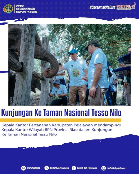 PELALAWAN - Dalam semangat membangun kolaborasi dan kepedulian terhadap kelestarian lingkungan, Kepala Kantor Pertanahan Kabupaten Pelalawan, Bapak Ir. Umar Fathoni, M.Si., mendampingi Kepala Kantor Wilayah BPN Provinsi Riau, Bapak Nurhadi, A.Ptnh., M.M., dalam kegiatan kunjungan dan silaturahmi ke Taman Nasional Tesso Nilo (TNTN) yang terletak di wilayah Kabupaten Pelalawan, pada 1 Juli 2025.