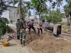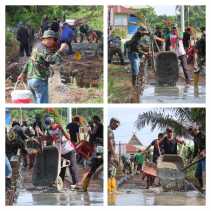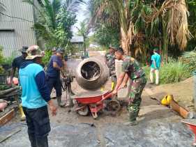Satgas TMMD ke 115 Kodim 0313/KPR Gesa Pengerjaan Semenisasi Jalan di Teluk Meranti