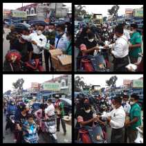 PWI Pelalawan, Rel - Akhlag, GP Ansor dan Banser Bagikan Masker, Hand Sanitizer dan Vitamin C
