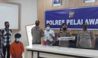 PELALAWAN, RIAUBERNAS.COM - Kapolres Pelalawan AKBP Indra Wijatmiko, S.Ik, didampingi Kasat Reskrim Polres Pelalawan .