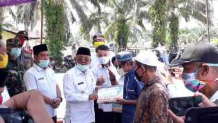 PELALAWAN, RIAUBERNAS.COM - Bupati Pelalawan HM. Harris menyerahkan secara simbolis Bantuan Langsung Tunai Dana Desa (BLT-DD) t.