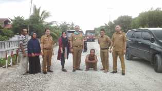 ROKAN HILIR (Riaubernas) - Mata Bupati Rohil H.Suyatno lurus tertuju ke sebuah alat berat grader sedang memadati ruas jalan pak.