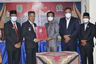 ROKAN HILIR (Riaubernas) - DPRD Kabupaten Rokan Hilir (Rohil) menggelar sidang paripurna penandatanganan persetujuan Kebijakan .