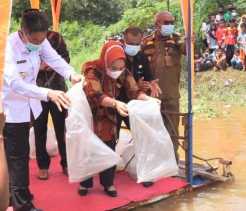 Tingkatkan Populasi Ikan Disungai Rohil ,Bupati Afrizal Sintong Tabur Benih Baung